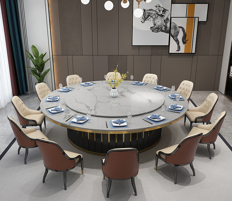 2022最新电动桌款式1:轻奢风16人台电动餐桌