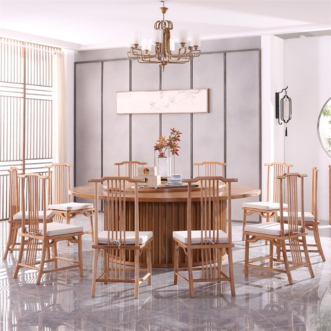 酒店包房中式禅意全实木2.4米电动餐桌