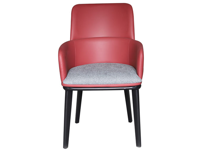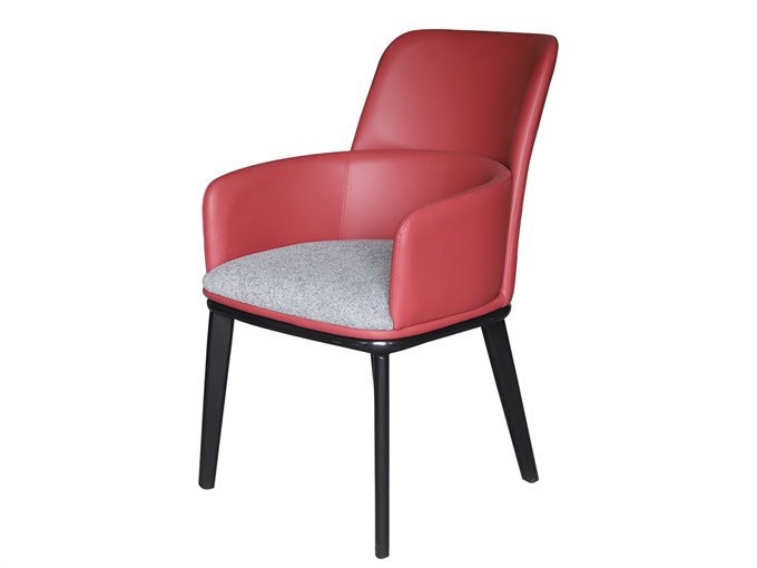 咖啡厅现代风格餐椅 | 红色皮革靠背与灰色布艺坐垫